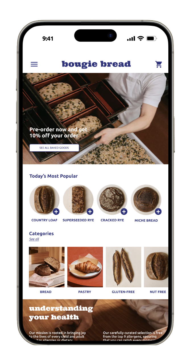 User-centric design that highlights the sophistication of bougie bread’s offerings while ensuring an intuitive navigation experience for effortless browsing and ordering.