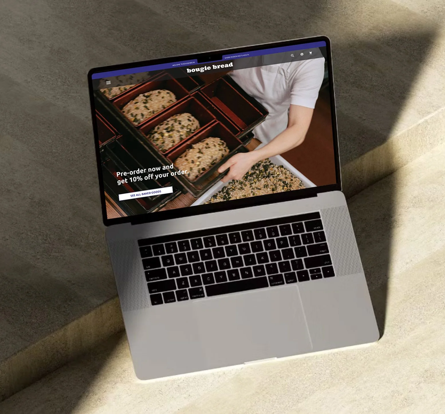 Desktop web version horizontal screen - User-centric design that highlights the sophistication of bougie bread’s offerings while ensuring an intuitive navigation experience for effortless browsing and ordering.